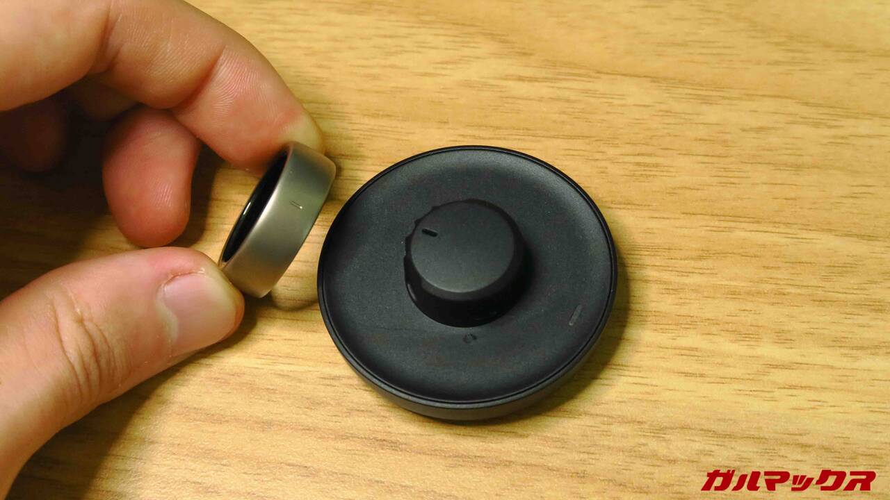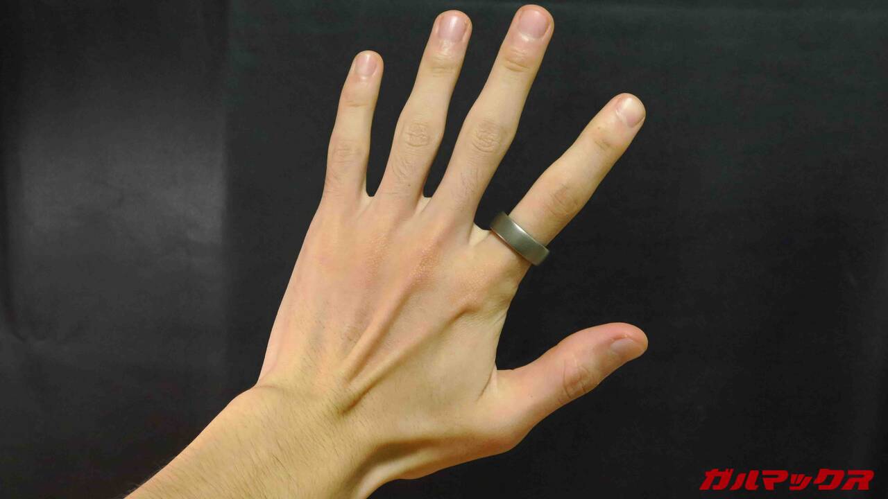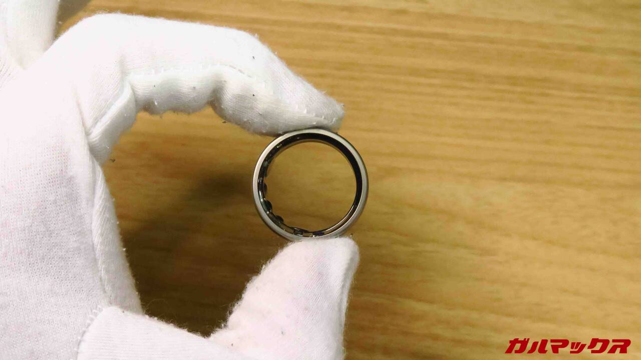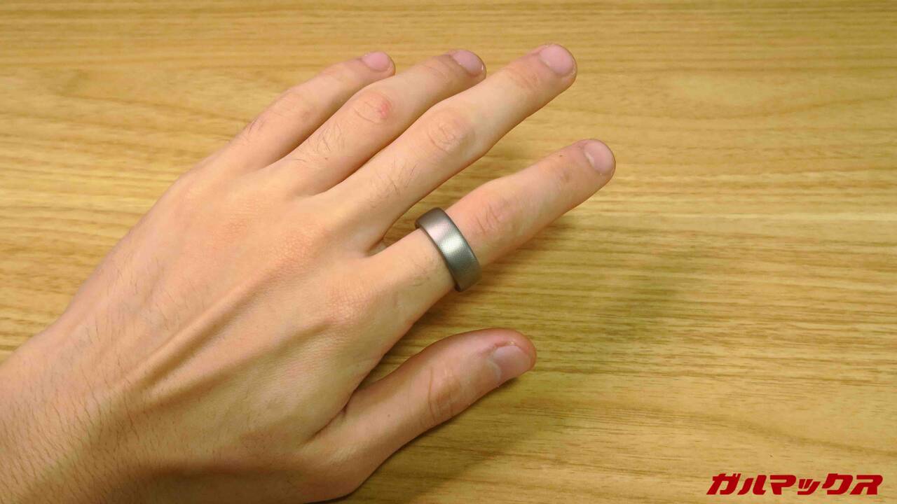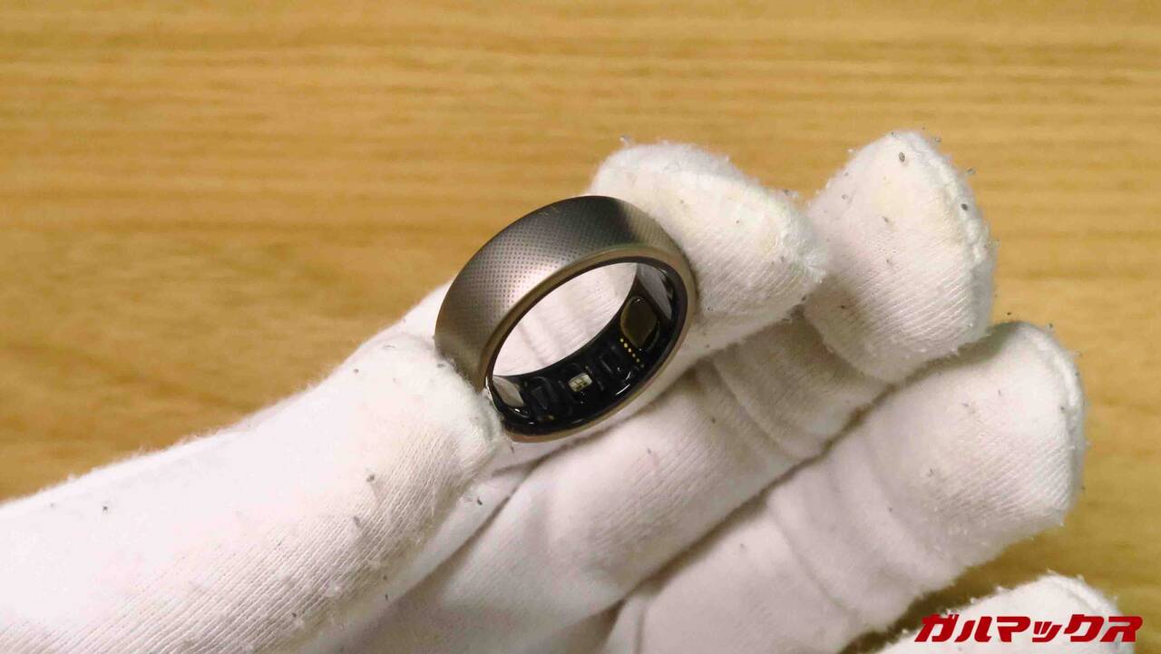 Amazfit Helio Ringの外観はこんな感じ。取材のときにも触れていたのですが結構「指輪としては」主張はでかいです。電子機器+バッテリーなんで致し方ないけどね。