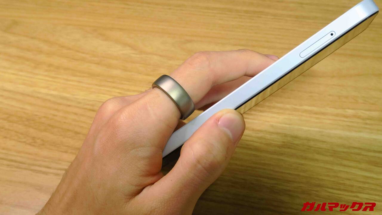 ▼スマホの場合だとスマホの背と側面にかけて当たるんでカツカツと音が鳴る。なので日常使用が多い手、利き手とは逆の手に装着するのが吉。↓