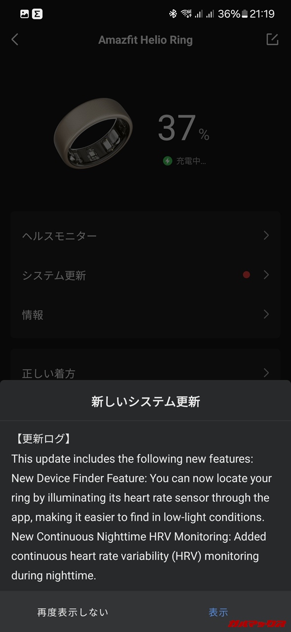 ▼あとAmazfit Helio Ringもファームウェアアップデートに対応していました。長期使用を想定したウェアラブルデバイスゆえ更新に対応しているのも重要なポイント‥しっかり押さえてくれています。↓