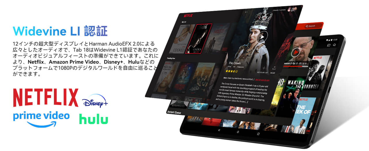 ▼著作権コンテンツも高画質なHD再生が可能!NetFlixもHD再生が可能で、安価なタブレットとしては非常に優秀です(この手のL1対応タブレットではNetFlixだけが画質が下がるものが多い)。↓