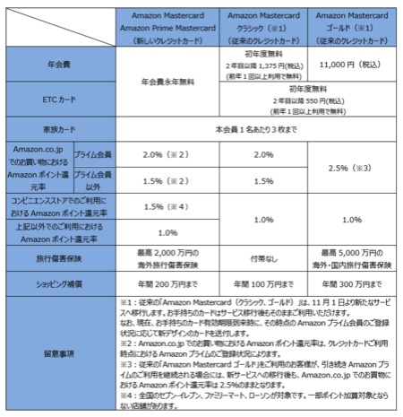 既に「Amazon Mastercardクラシックカード」、「Amazon Mastercardゴールドカード」所有している場合は11月1日自動で切り替わるとのことです。