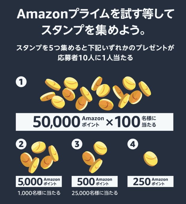 プライム会員限定。スタンプラリーで50,000ポイントを狙え!