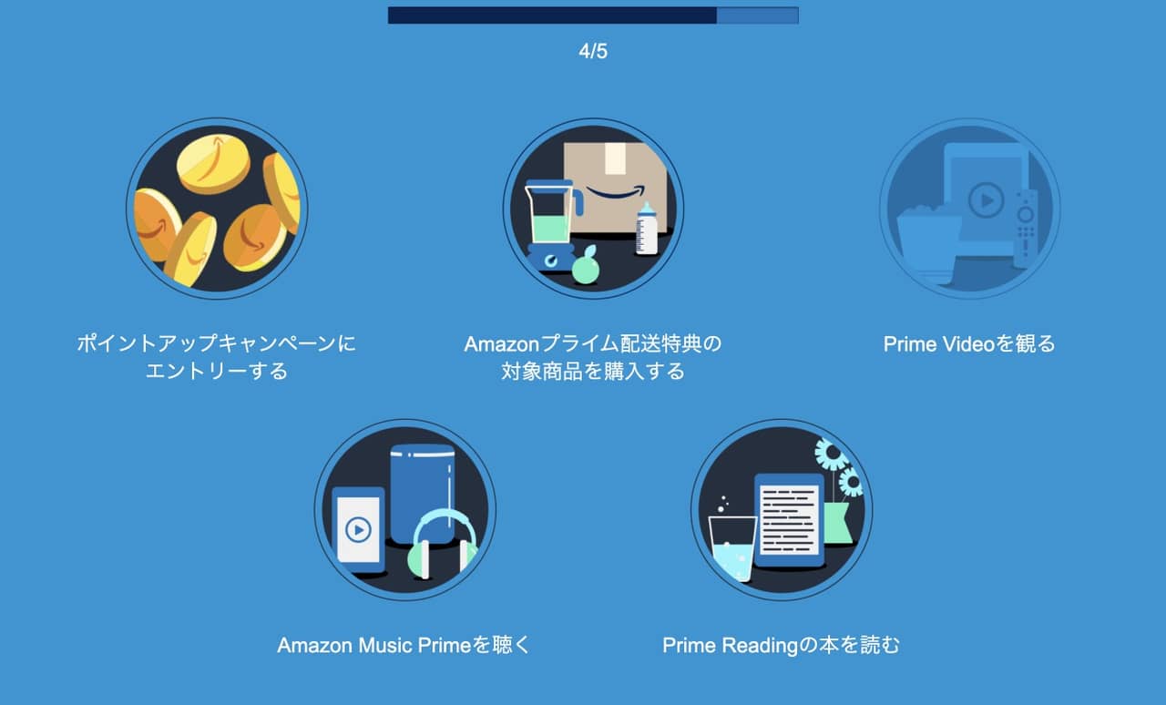 ▼以下をクリアするとスタンプが貰えます。Prime Videoの視聴はスタンプが表示されるまで最大72時間かかるみたい。僕も表示まち。とりあえず、お買い物以外はプライム会員の人はクリアできるはず!↓