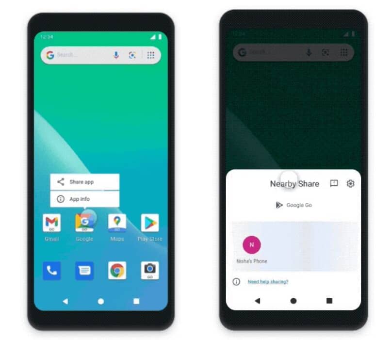 ▼さらに、Android 12 Go Editionはアプリをまるごと共有できるという機能が搭載されています!Playストアからではなく直接近距離で共有してもらうことで、アプリダウンロードにかかるデータ容量を節約できるという仕組み。↓