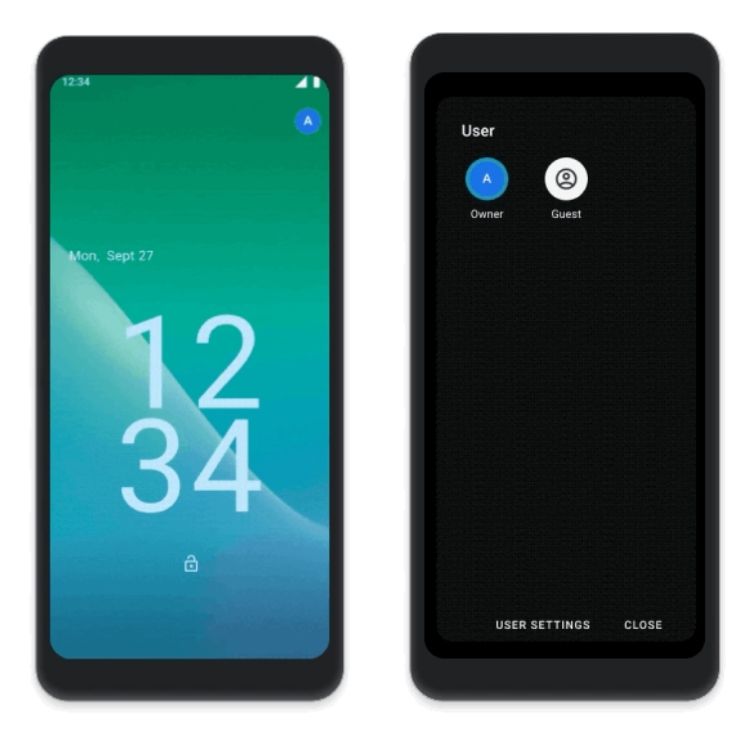 ▼マルチユーザー機能も使いやすくなっており、ロック画面右上にユーザアイコンが表示されるようになっています!ここを押すとユーザ一覧が出てくるので、そこから別ユーザを選んだりゲストモードに簡単に切り替えできるっちゅう仕組みです!↓