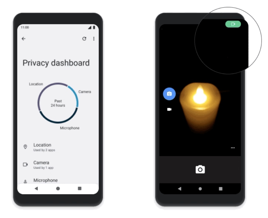 ▼さらにプライバシー面も強化!カメラ、位置情報、マイクの権限をどれだけアプリに許可しているかを確認できるようになり、さらにカメラやマイクを使っているときは右上にアイコンが出てくるようになっています!裏方で勝手にカメラを起動されるリスクの低減が見込めます。↓