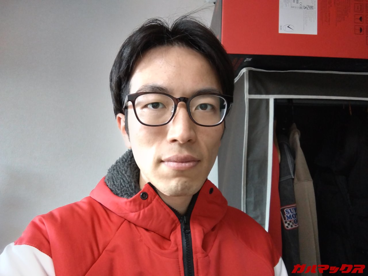 ▼自撮りはポートレート非対応でしたがビューティーモードに対応しており、美顔補正も出来ますぞ!写りもなかなか。筆者の隠しきれんほうれい線もうまく補正できてます。歳を感じるなこれ。↓
