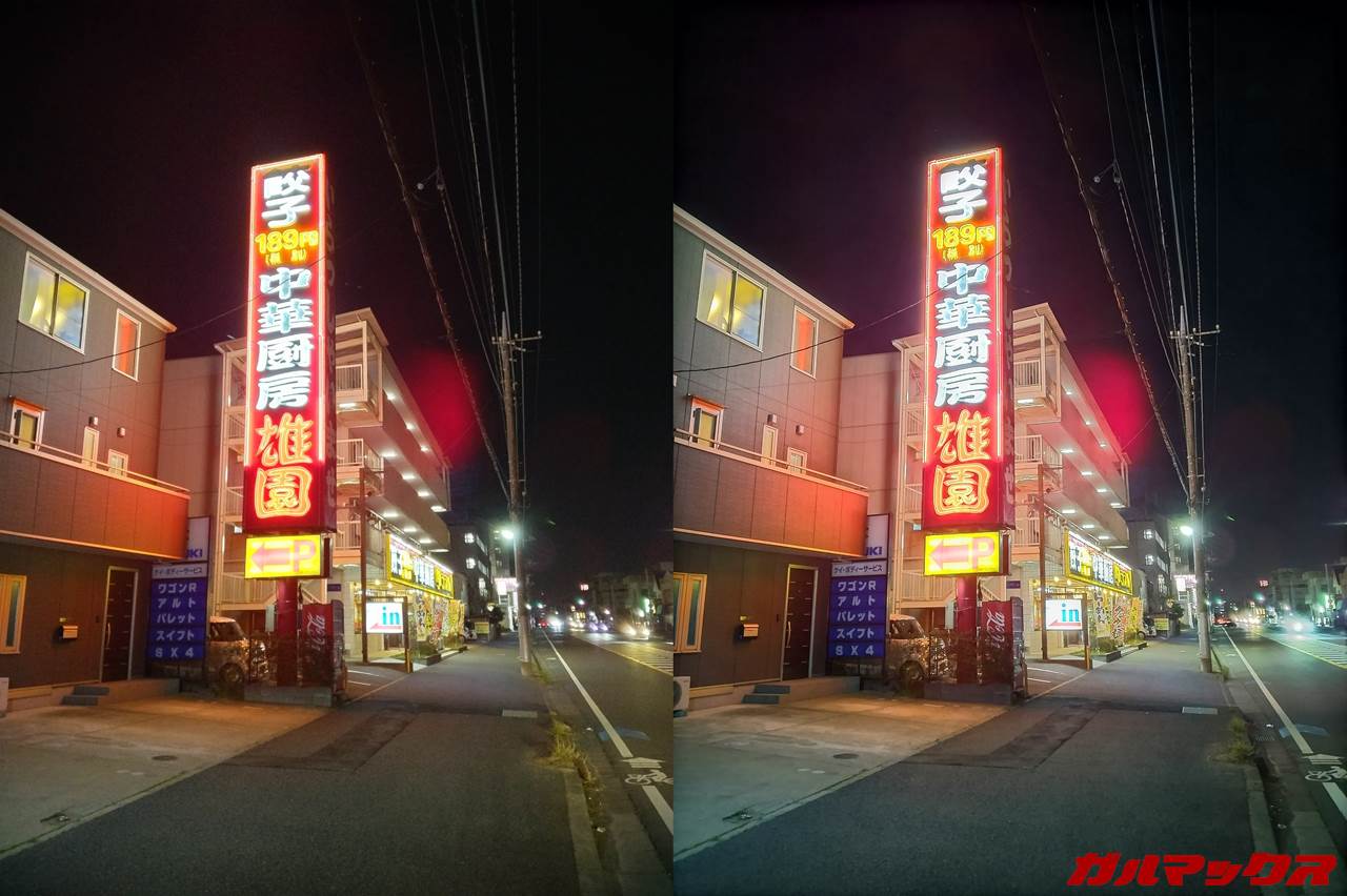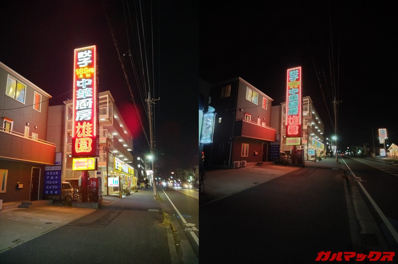 ▼ただし超広角カメラはナイトモード非対応なので、かなり暗くなっちゃいました。左が通常(非ナイトモード)、右が超広角カメラで撮影。↓