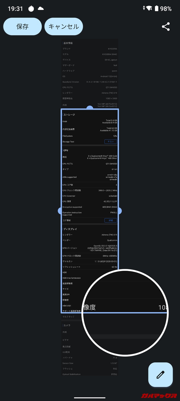 ▼スクショは電源キーと音量キーを長押ししなくてもできるようになっており、さらにロングスクリーンショット機能にも対応!しかも範囲をピンチ操作で変えられるという新しいタイプ。使い勝手が良くて非常にGoodっすわ!↓