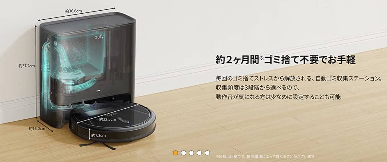 このモデルは2ヶ月間ゴミ捨てが不要な自動ゴミ収集BOX付き。このタイプってめちゃくちゃ高いんですが、今なら3.5万円。ちょっと安すぎて驚いてます。