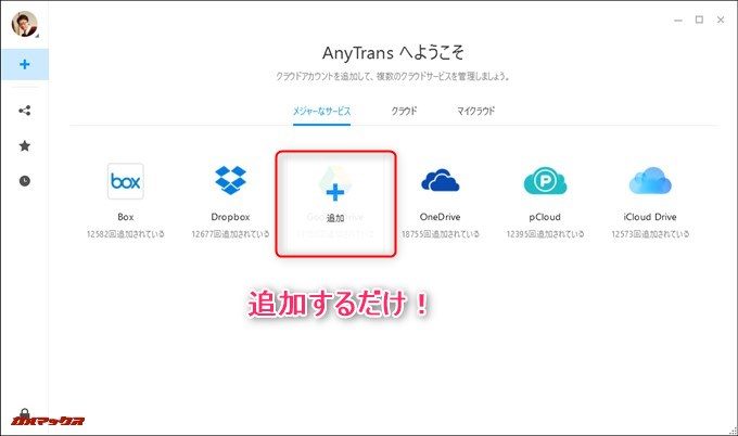 ▼あとはAnyTrans for Cloudで管理したいクラウドストレージサービスを選択するだけです。↓