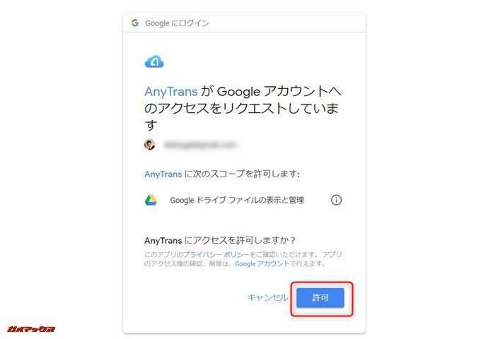 ▼アカウントの紐付けはクラウドストレージサービスに対しAnyTransからのアクセスを許可するとOK。全てWEBブラウザー上で完結するシンプルな方法なので使い方に困ることは無いはず。↓