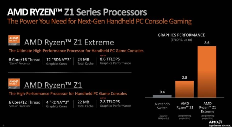 ▼Ryzen Z1シリーズ最上位のRyzen Z1 Extremeも同様に8.6TFLOPSとなっているのである。↓