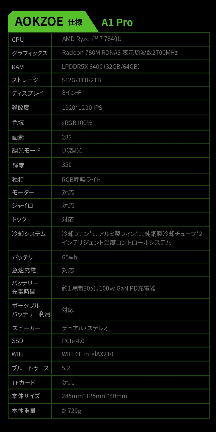 ちなみに発売済みのAOKZOE A1は、CPUがAMD Ryzen 7 6800UでGPUがAMD Radeon 680Mなので、AOKZOE A1 PROはCPUもGPUも順当にパワーアップしている。さすがPROモデル。