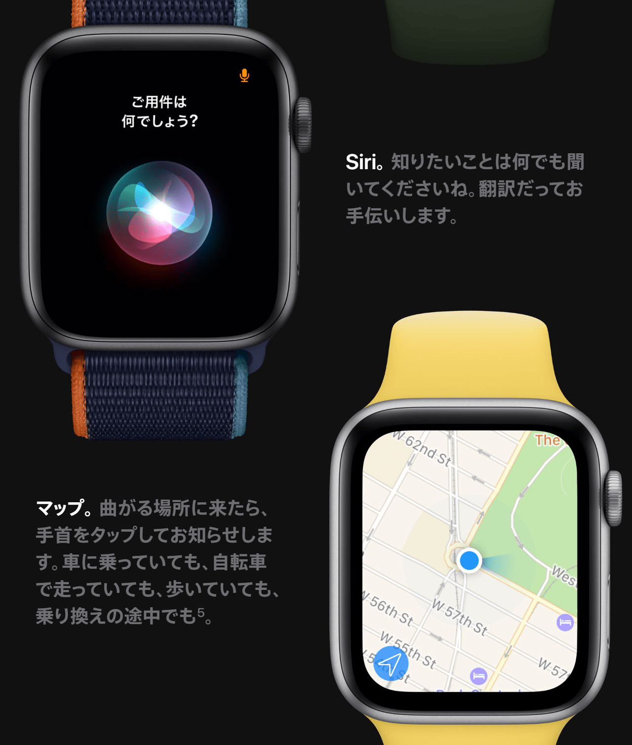 ▼Siriアシスタントにも対応しているのはもちろん、マップもApple Watch 6自身から見られるのも便利そう!歩いている時もチャリンコに乗っている時も安心。↓