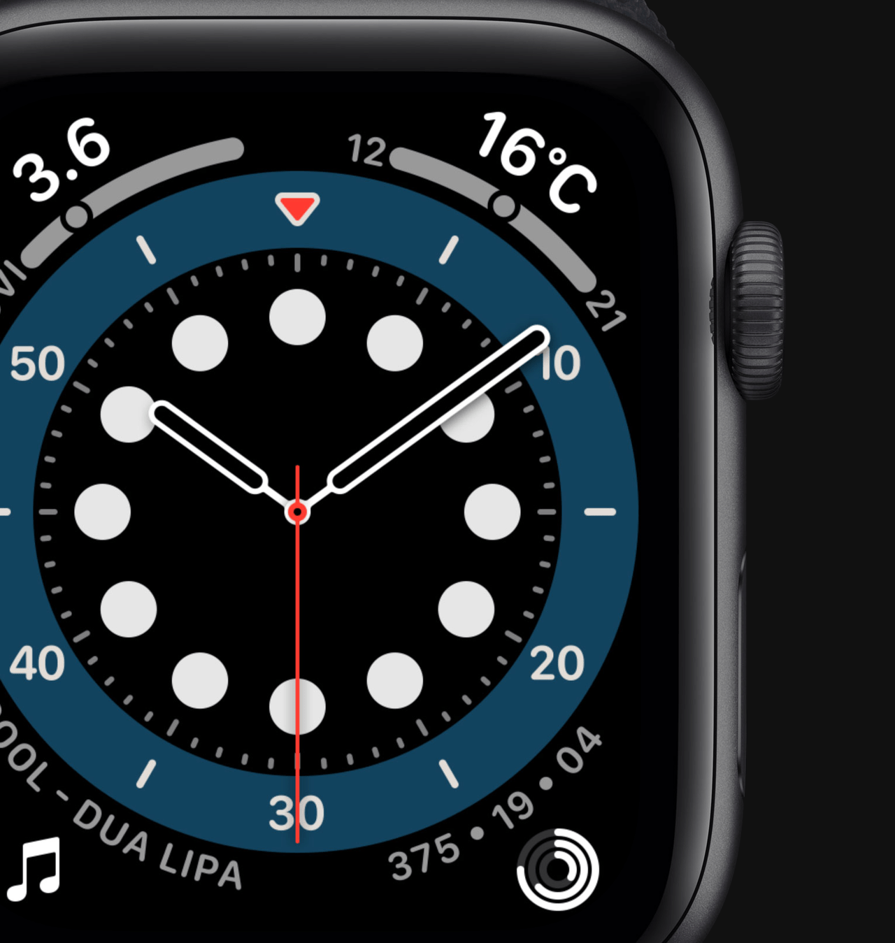 ▼Apple Watch 6は先代モデル同様にディスプレイの常時表示に対応しており、これにより、スマートウォッチによく見られた「時計を確認するために腕を持ち上げるジェスチャー」をわざわざ行わなくても気軽に時刻がサクっと確認できるのはナイスですね。↓
