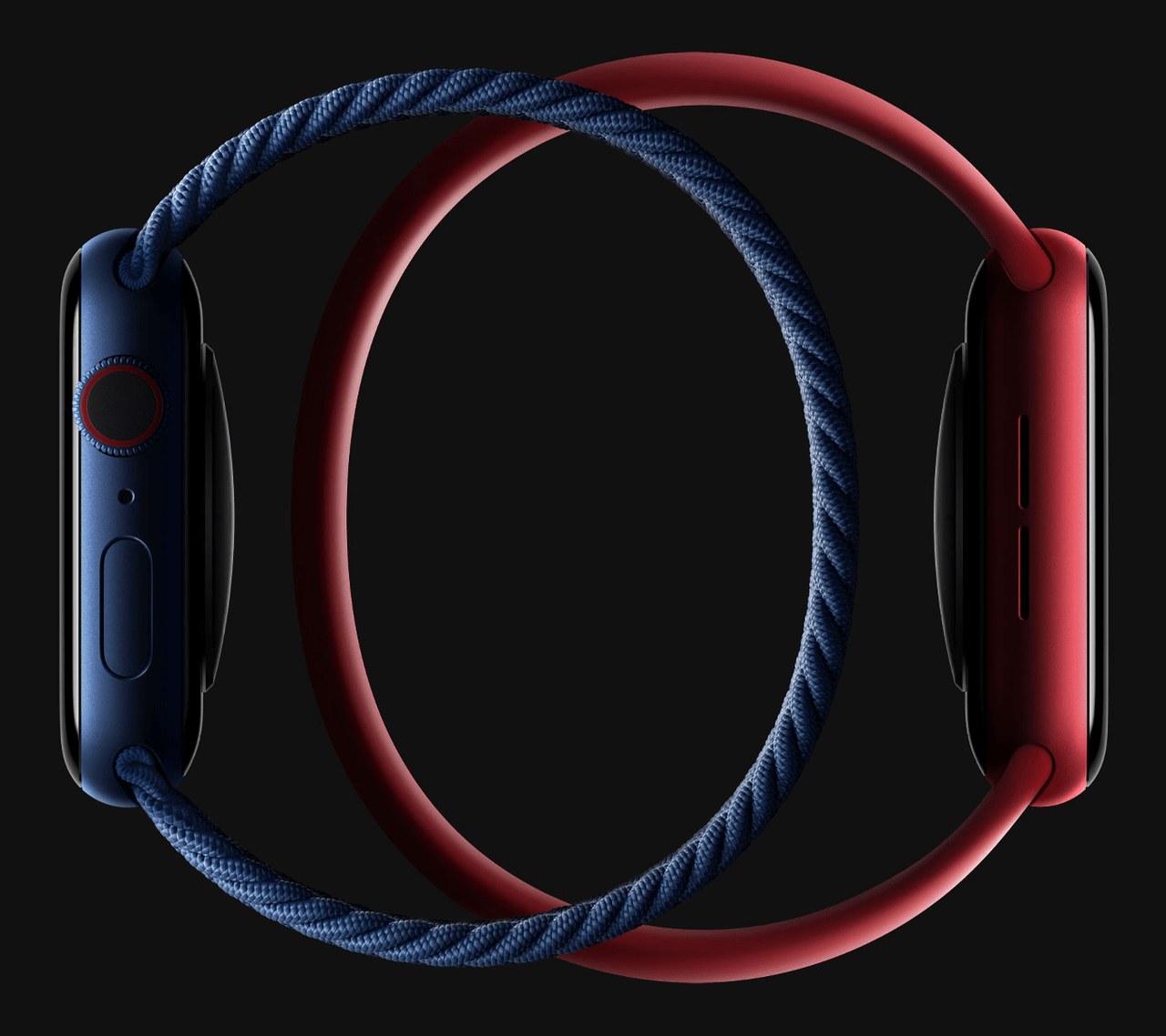 ▼Apple Watch 6のバンドはこれまでと同様のシリコンゴムのバンドに加え、新たに16,000本のシリコン糸を織り込んだバンドが登場。これまでのゴムらしさはなく、まるでミサンガのようなアクセサリーらしさがステキっす!↓