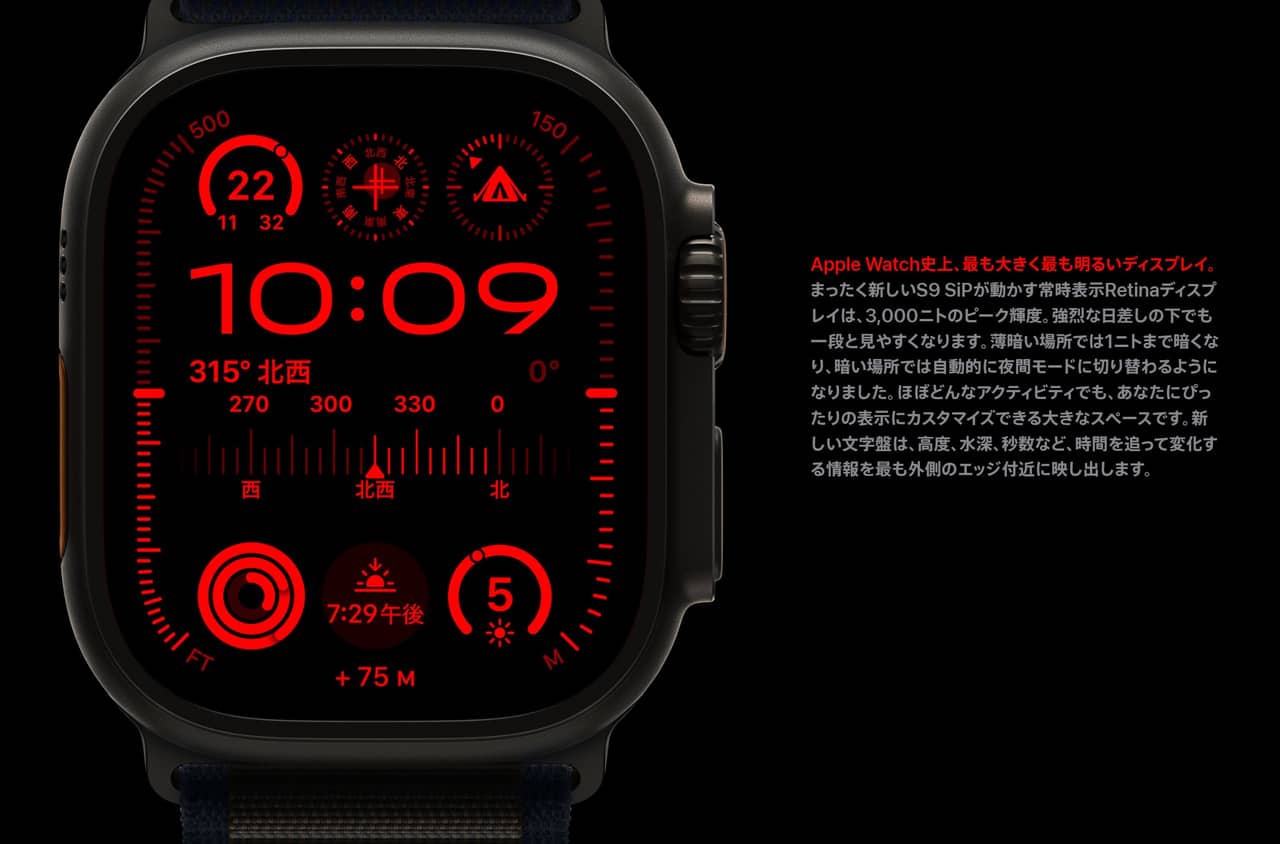 登山やアウトドアといった用途に向けて開発されたUltraグレードの後継モデル「Apple Watch Ultra 2」も登場しています。