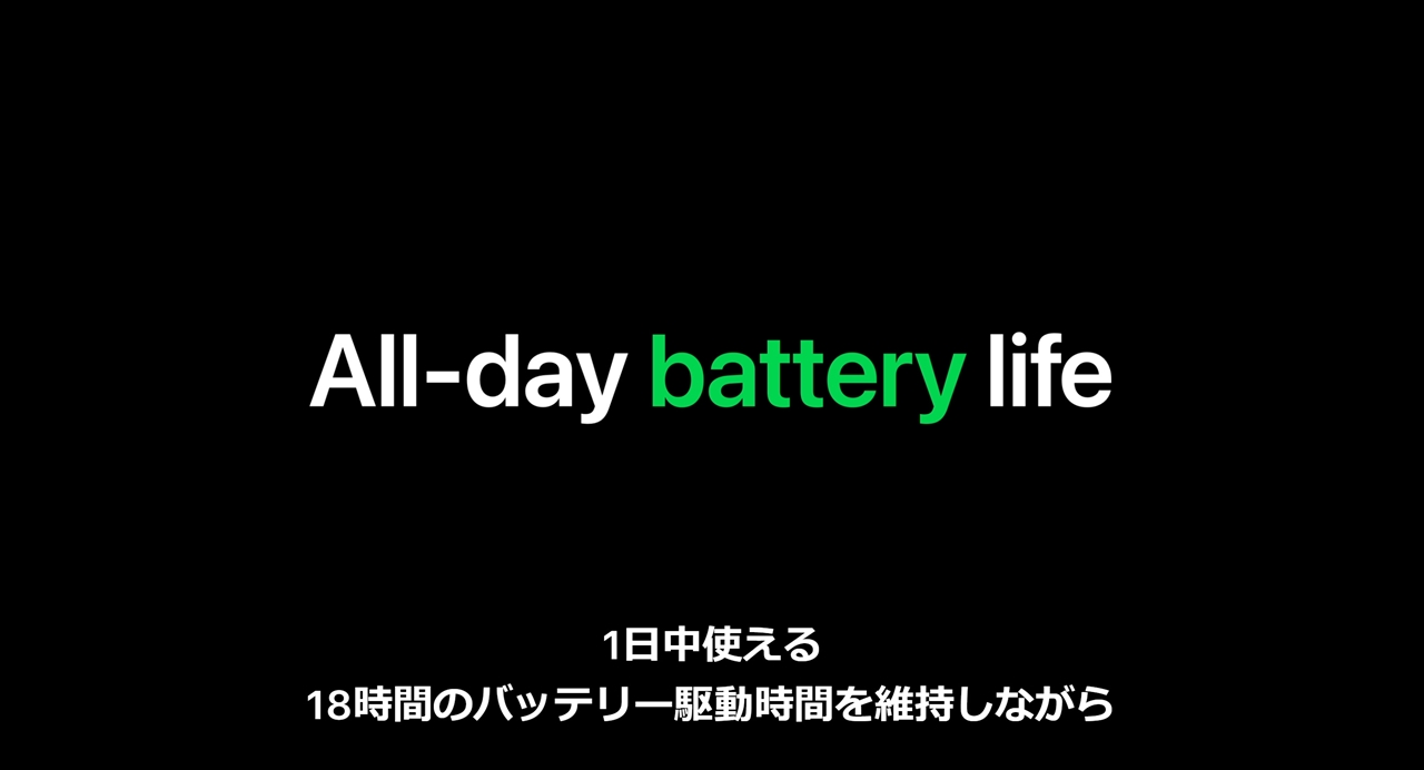 ▼しかし電池持ちは相変わらず劣悪。先代モデルと同じく18時間の駆動時間だそうです。チップは変わったとはいえ新機能も増やした故にこうなったのでしょうかね。そもそも18時間程度では「一日中使える」って言えんよ。↓