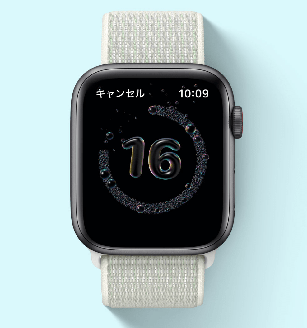 ▼健康面、衛生面への気配りもバッチリで、手洗いのリマインダーも設定できるんです。設定しておけば、手洗いを忘れること無く行えるのも面白いですね。個人的にこのタイマーの画面はとても好きです。↓