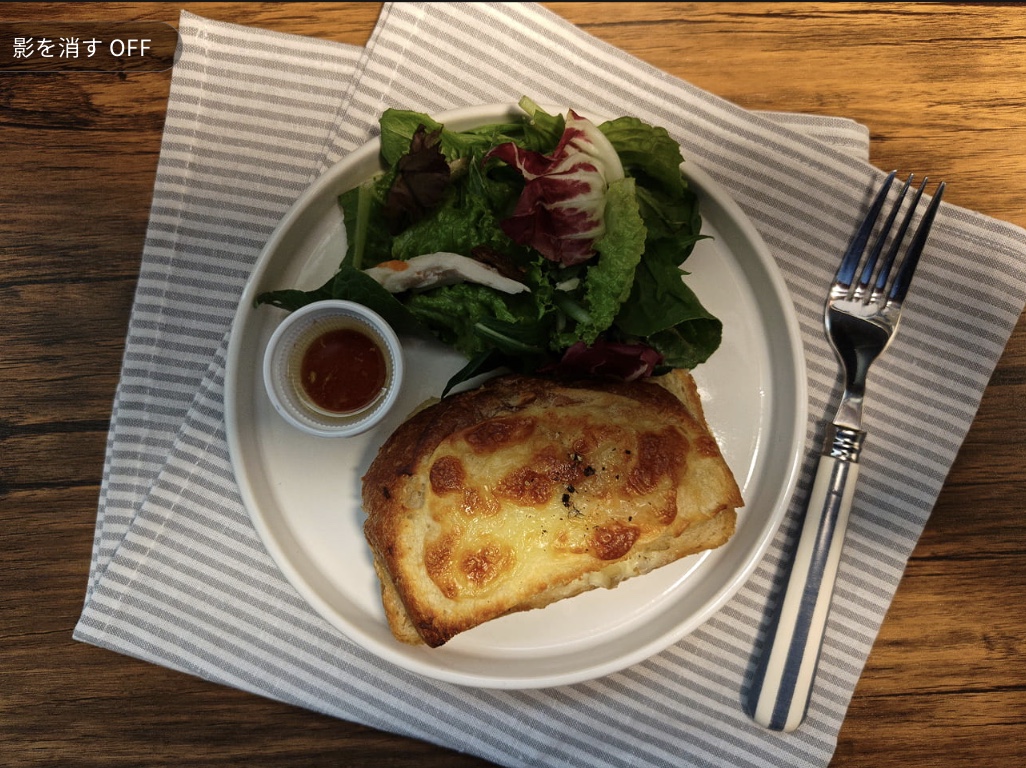 ▼飯撮りでは影が入りがちですが、影除去機能を搭載していますよ!(これは前モデルでもあった)↓