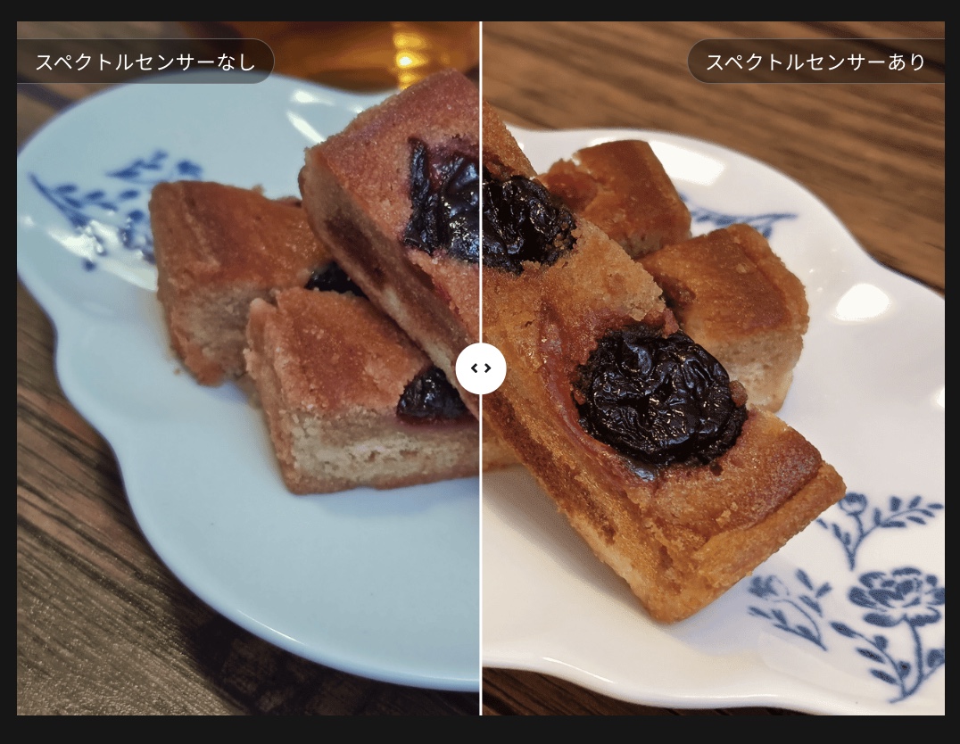 ▼進化したポイントとしては前モデルだとProに搭載されていた14chスペクトルセンサーを搭載。より光や色の細部まで再現できるので撮影の楽しさは増しそうですね〜!これは嬉しい!↓