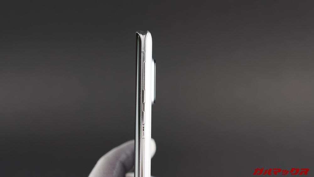 ディスプレイは湾曲してる。これ大嫌いなんだよね。画面の端が曲がってるから見辛いしボタンも押しにくい。あと、普通にスマホ持っていてもエッジに指が当たり、その入力が認識されているので左右スワイプが上手くできない場合も多い。マジ終わってる。
