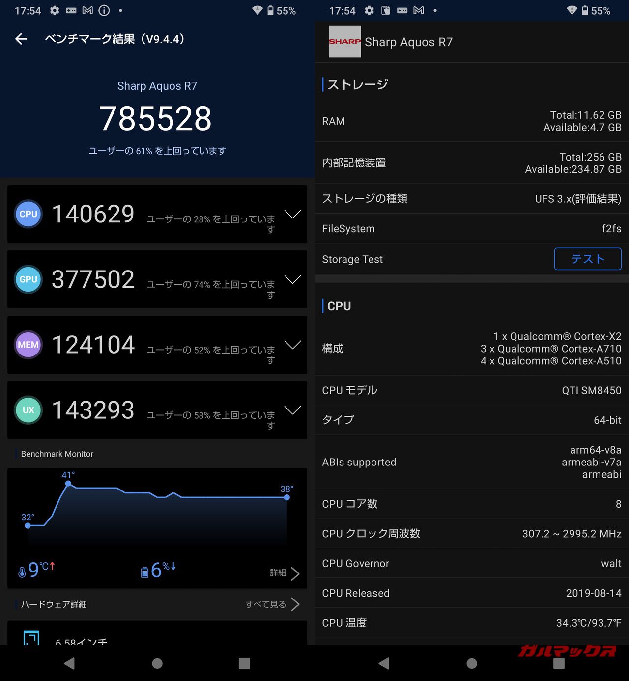 「もしや、ぶっ壊れてるんじゃ…」と思いTwitterで調べてみたが、どうやらAQUOS R7はそんなにAnTuTuのスコアは出ないみたいである。