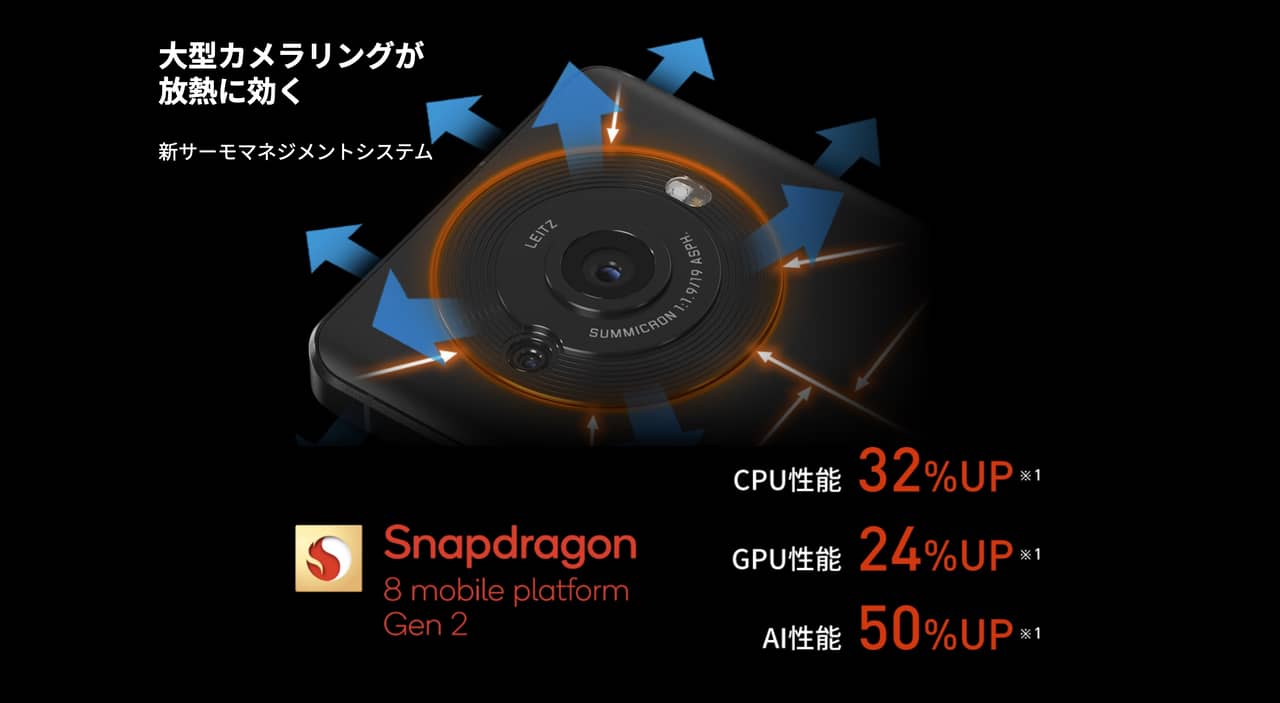面白いのがカメラリング。AQUOS R8 proでは大型のカメラリングが放熱の役割も果たすことで安定的な動作を実現しているとしています。