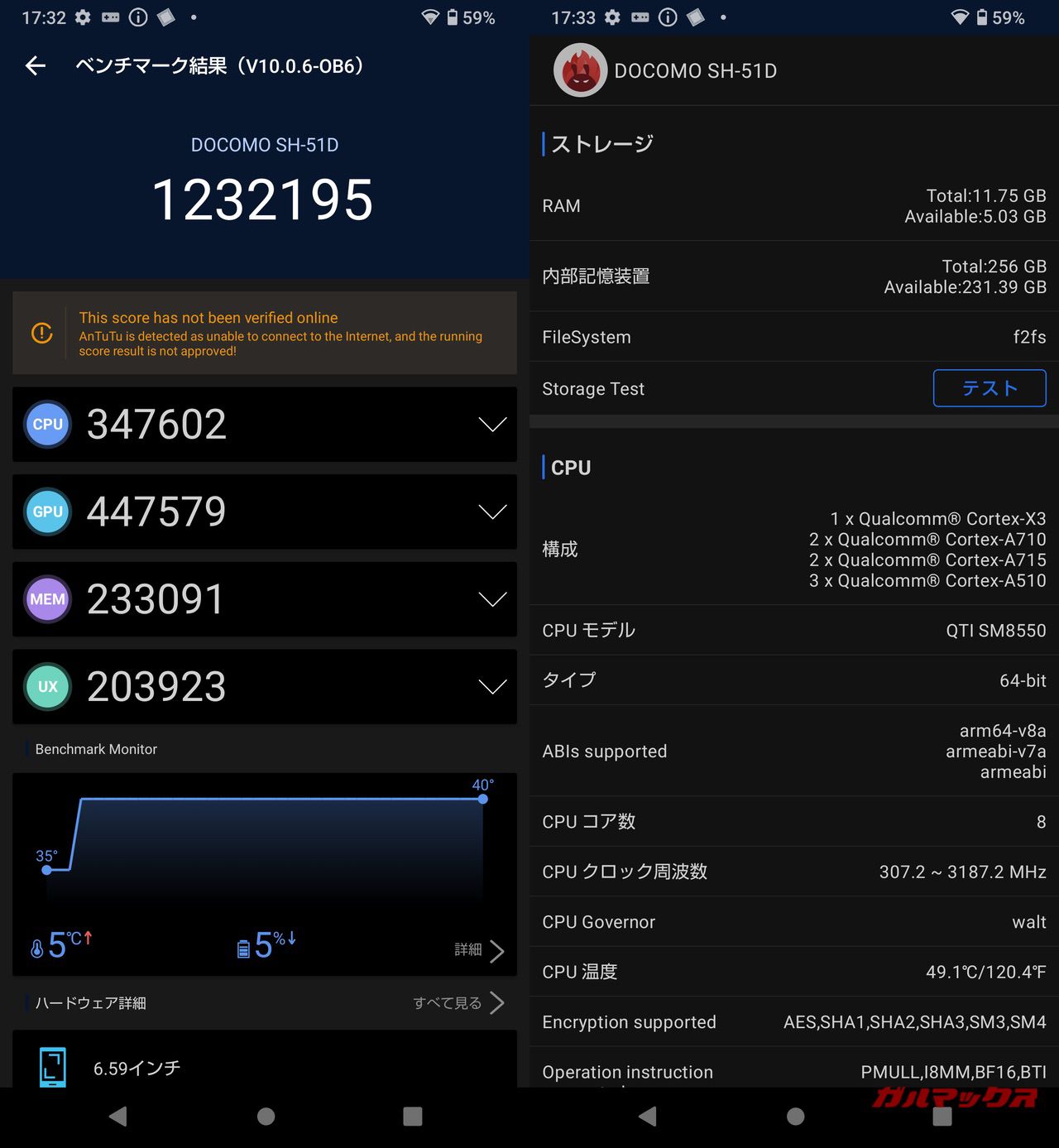 ガルマックスに届いた個体の問題か分かりませんが、手元にある端末ではSnapdragon 8 Gen 2のパワーは出し切れていないと判断せざるを得ません。