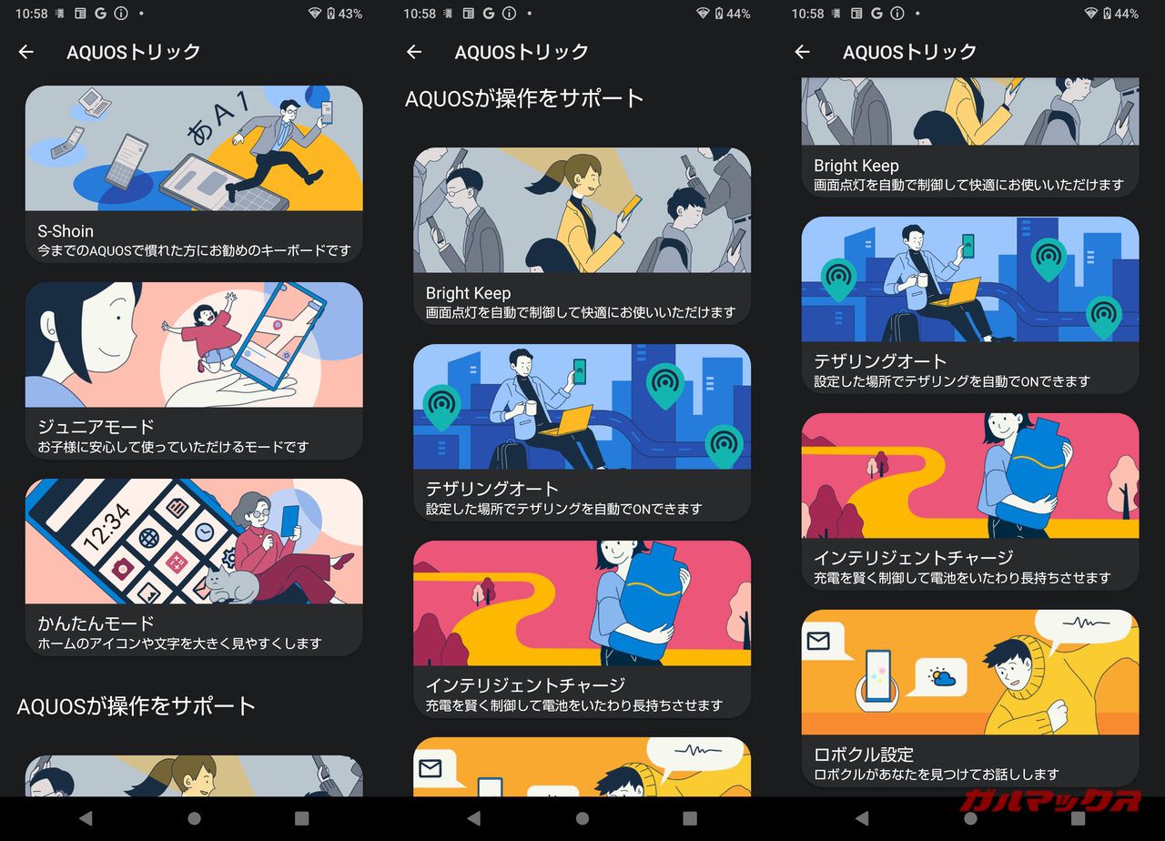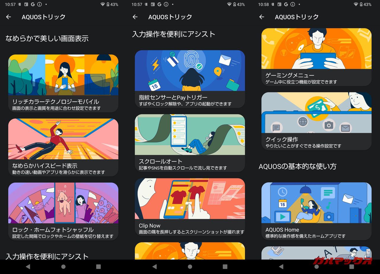 ▼AQUOS R8 proはお馴染みのAQUOS便利機能も満載されています。↓