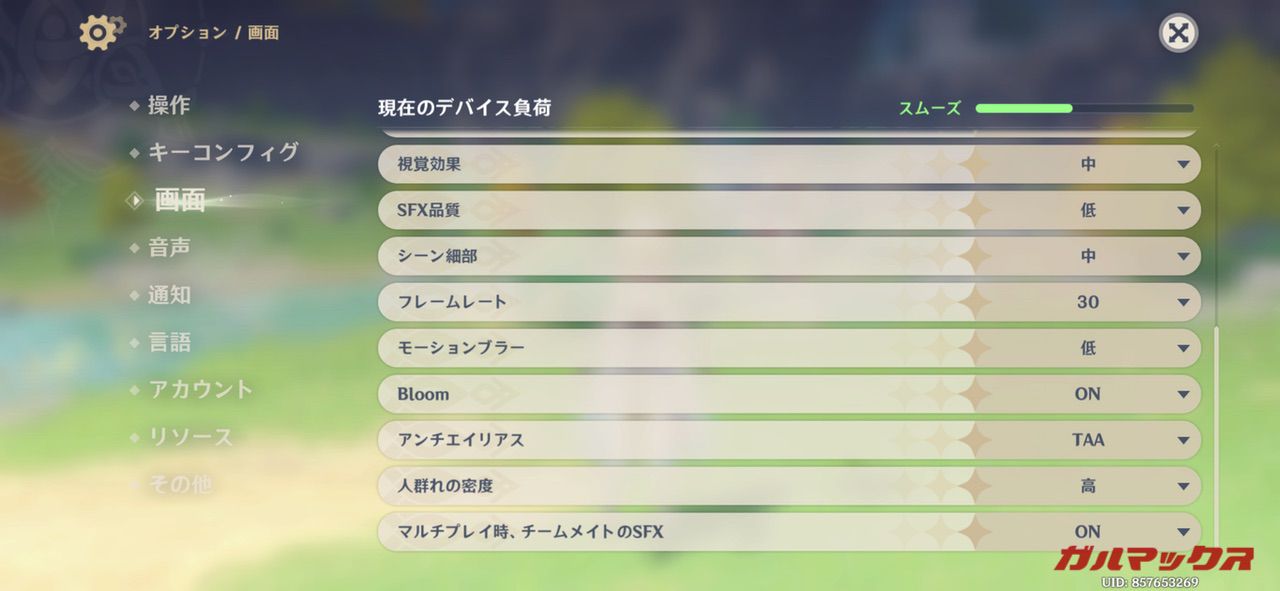 シューティングゲームでは画質よりも滑らかさが重視されますが、AQUOS R8 proは上限60FPSのスムーズ+極限でプレイ可能。実際のプレイでも60FPSをキープしているので快適なプレイが可能でした。