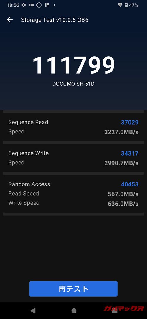 日常的な利用範囲で体感としては非常に快適な部類ですが、ベンチマーク結果がふるいません。Snapdragon 8 Gen 2の標準モデルはAnTuTu V10で総合スコアが150万点を超えてきますが、AQUOS R8 proは120万点台となっています。