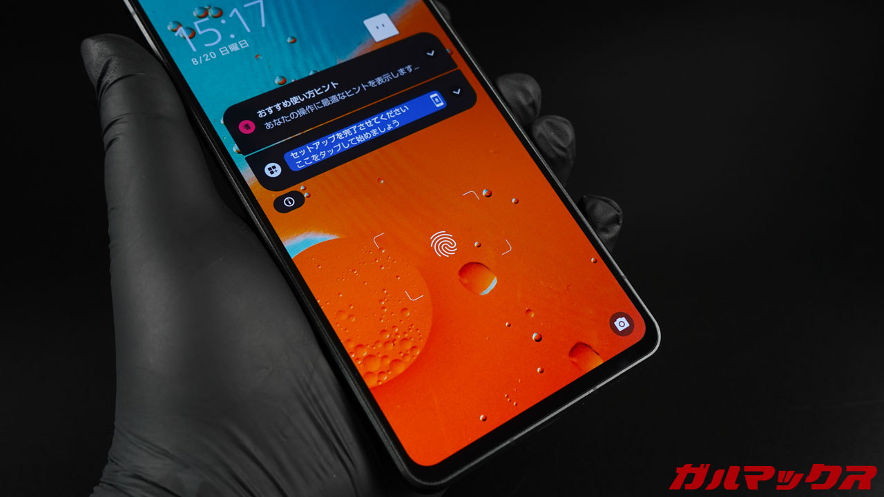 ▼指紋認証は認証スペースが広く、認証も驚くほど速いです。指紋認証はスマホで最も使う機能の一つなので、ストレスなく利用できた点が良かったです。↓