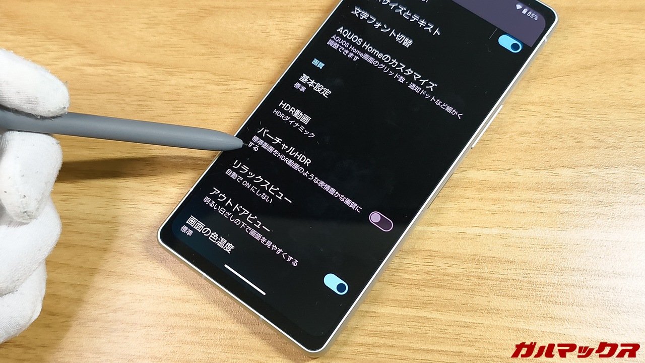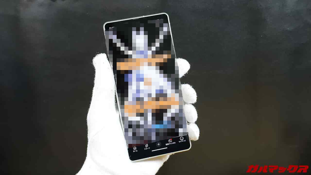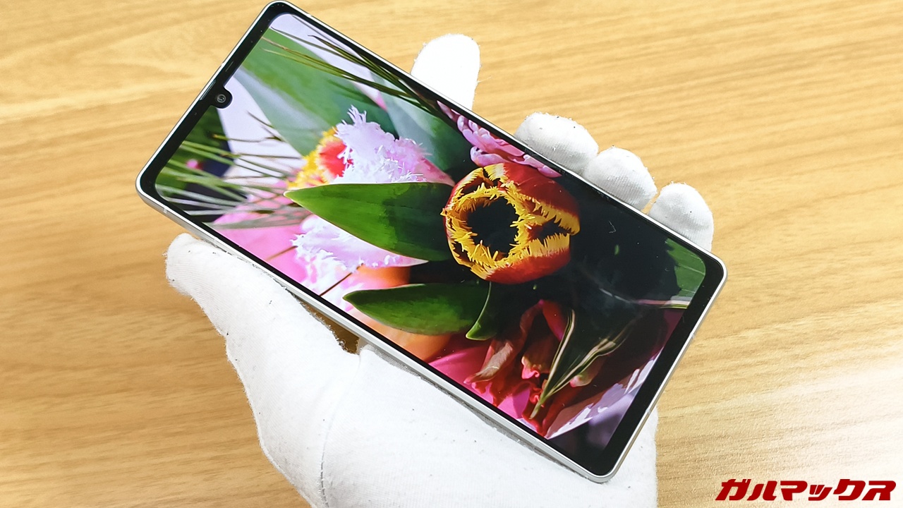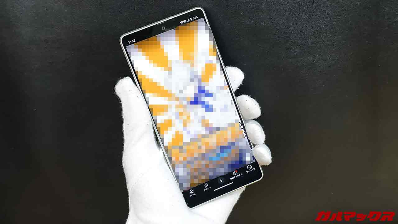 画面サイズが小さめ(6.39インチ)ということもあってFHD+クラスの解像度でも画素密度が高くドットの粗さを感じにくいというのも大きいと思えます。文字の輪郭も非常にシャープ。SHARPなだけに。