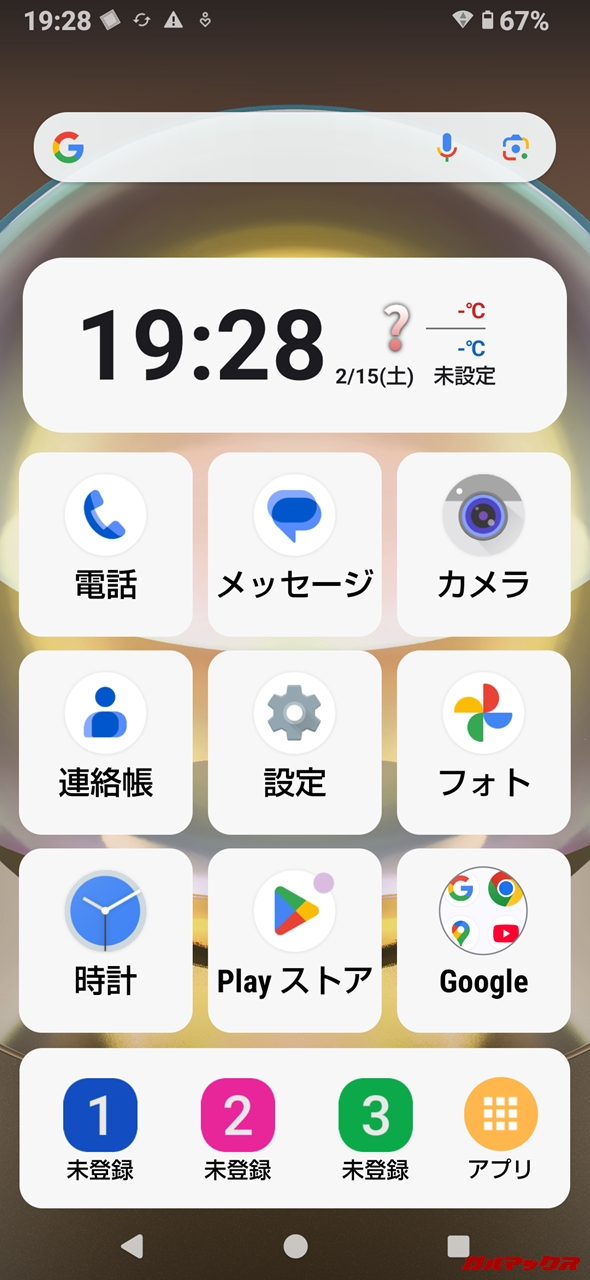 ▼かんたんスマホ的なUIへの変更も対応しており、デカい文字とボタンでかなり扱いやすくなります。シニアな方にも勧めやすい。↓