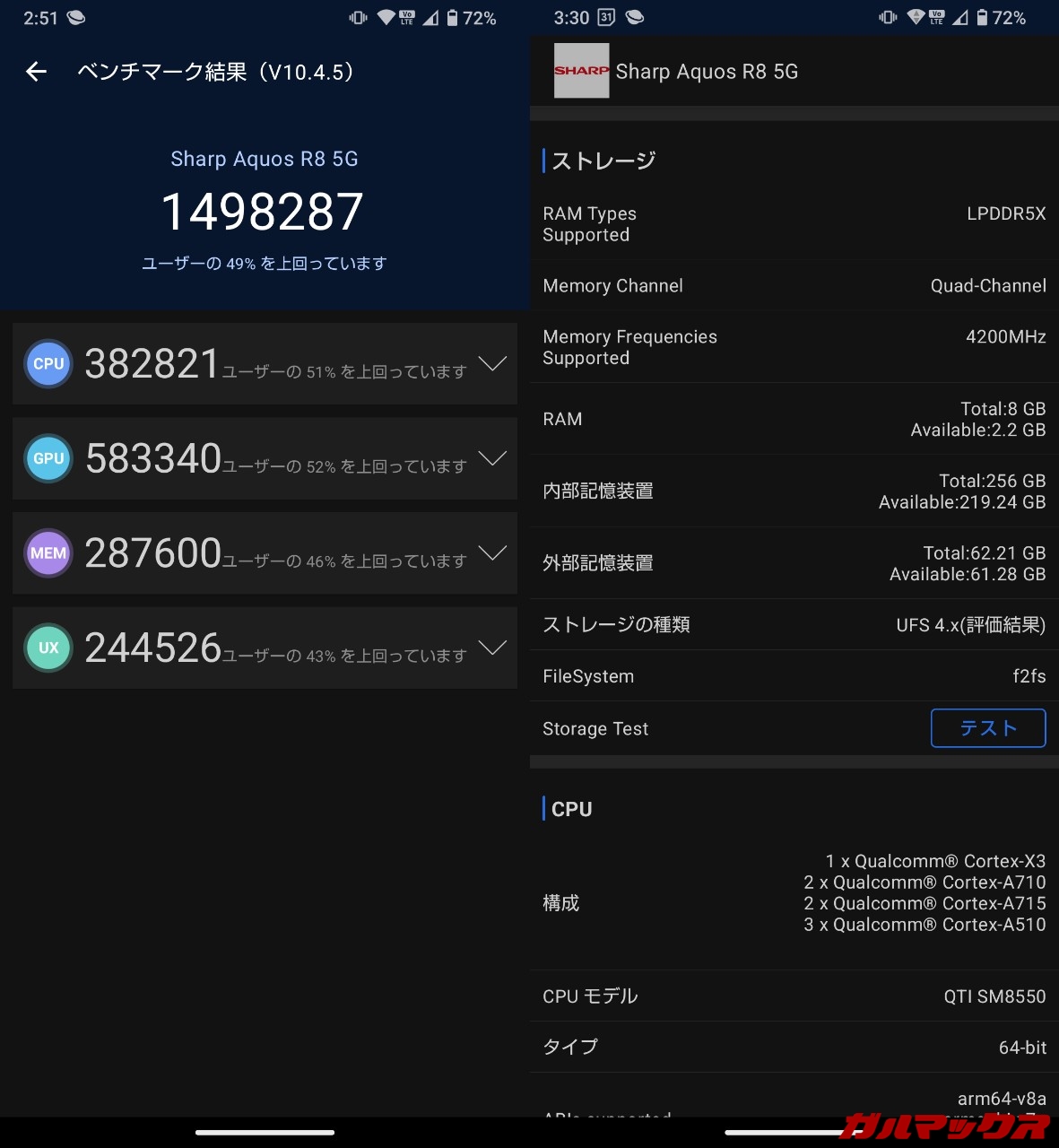 AQUOS R8のスペック・ベンチマーク、検証結果