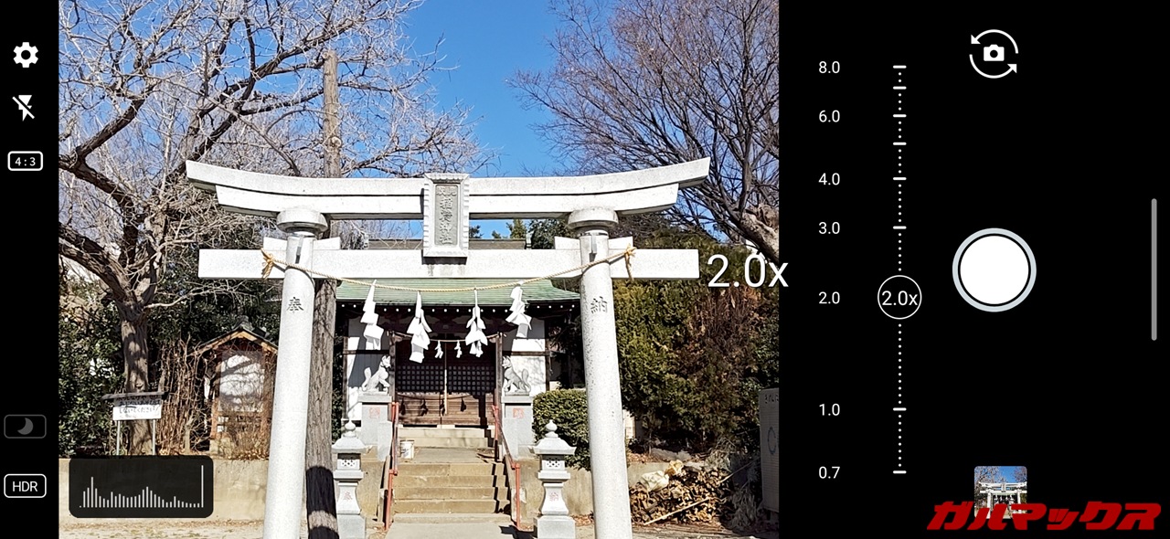 ▼ズームは最大8倍、ボタンを押したあとでスライダーで調節可能。カチカチと音がなります。↓