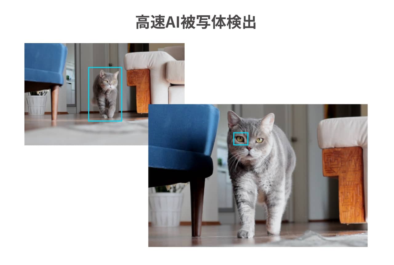 ▼AIを用いて高速で被写体を検出するほか、目を認識してそこからフォーカスを合わせてくれる瞳AF機能にも対応!家族にペットなどの写真もピンボケを抑え撮影しやすくなりますぞ。↓