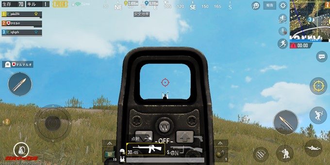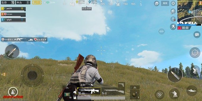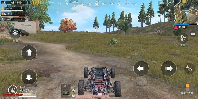 ▼画質調整で低設定となったので描写は低負荷な表示となりましたが、操作性は非常に良好です。十分ドン勝狙えるくらい(実際ドン勝できました。やった!)に滑らかな描写で遊ぶことが可能でした。