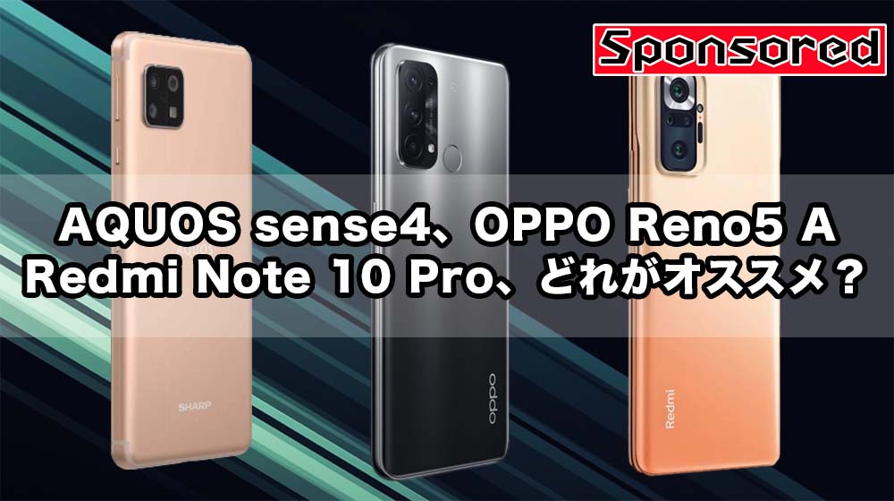 AQUOS sense4、Redmi Note 10 Pro、OPPO Reno5 Aはどんな人におすすめか