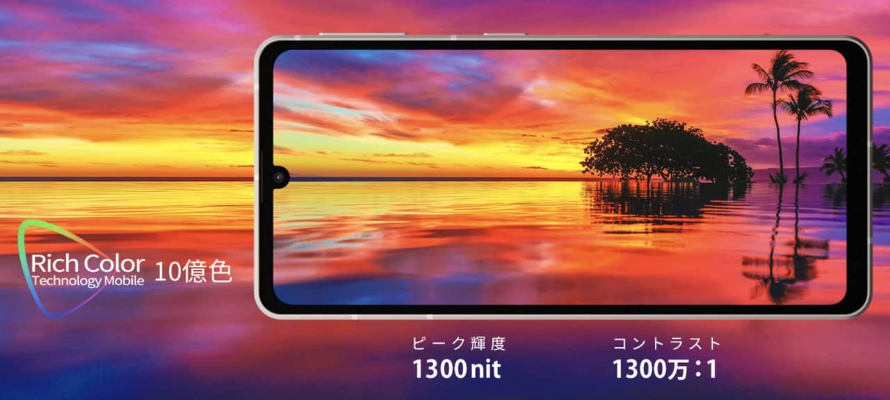 ▼ディスプレイは6.1型でインカメラはノッチタイプ。10億色表示に対応する有機ELパネル「IGZO OLED」を搭載しているのもグッド!↓