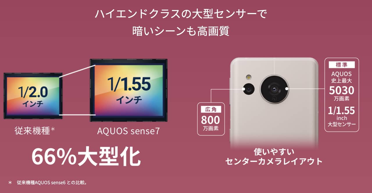 ▼AQUOS sense6と比較してセンサーが大型化したのである!↓