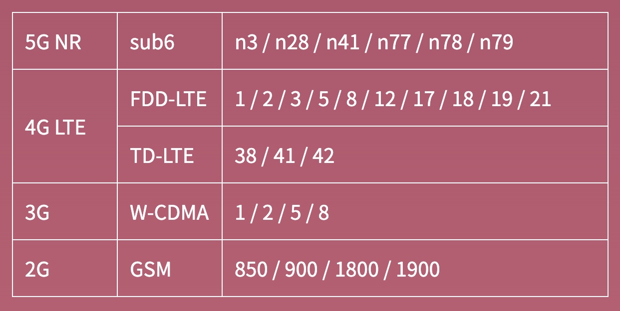 ▼対応バンドも充実!ドコモ、au、ソフトバンク、楽天モバイルで重要なバンドに合致しているので回線が変わっても使い続けられるのが良いじゃないか!↓