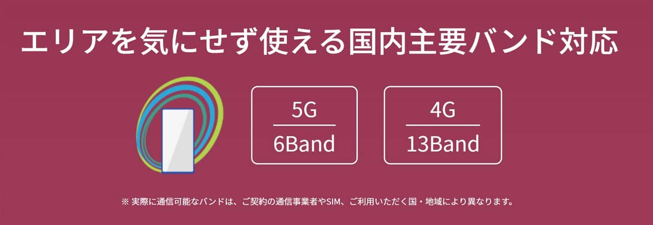 ▼またこのモデルはSIMフリーの位置付けとなっており、対応バンドやアプリといったキャリアの制約がないのも魅力ですよ!対応バンドも全キャリアの主要なものに対応!↓