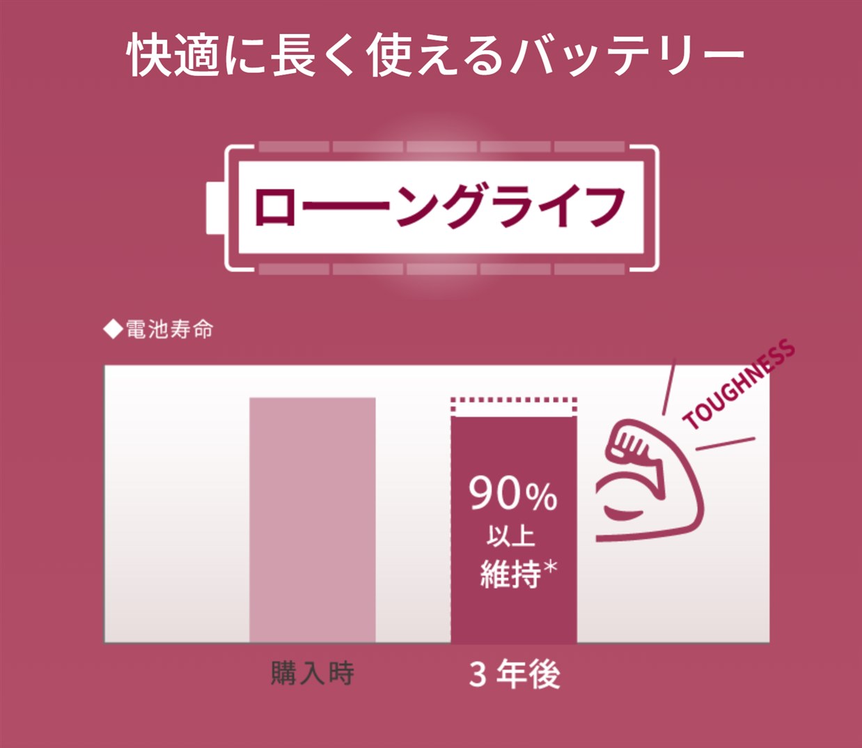 • 3年使っても劣化しにくいバッテリー