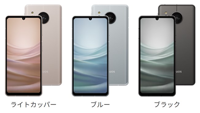 ▼後述するカメラが目立つ個性的なデザインですよねぇ~。AQUOS R7のような雰囲気。ボディカラーはカッパー、ブルー、ブラックで、ドコモ版では4色だったんだけどこっちは3色にオミットされていますね。↓
