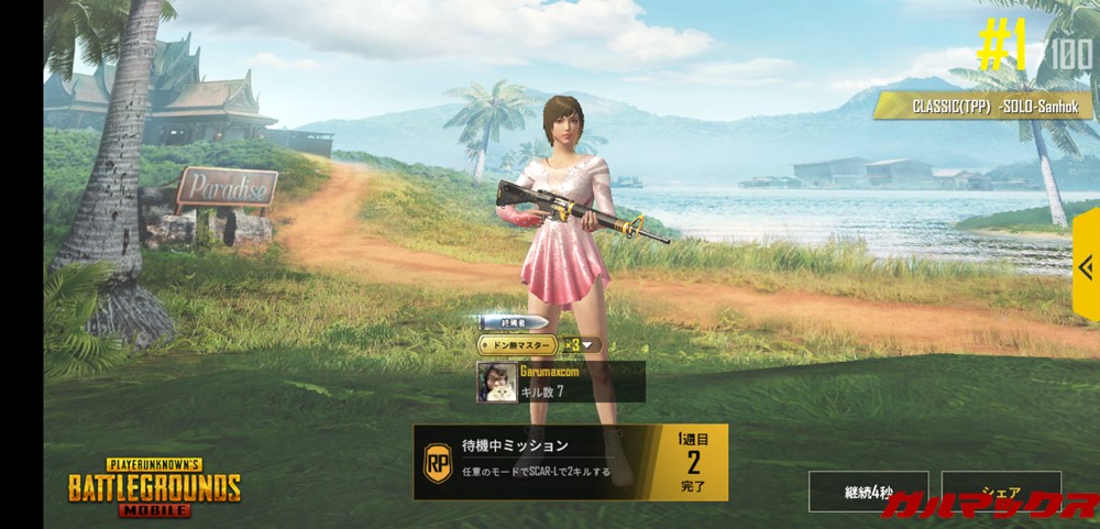 ▼実際にプレイ。マシンパワー不足での処理落ちは皆無で非常に滑らかな描画をあらゆるシーンで体感できます。ちゃっかりAQUOS zeroでドン勝を頂きました。↓