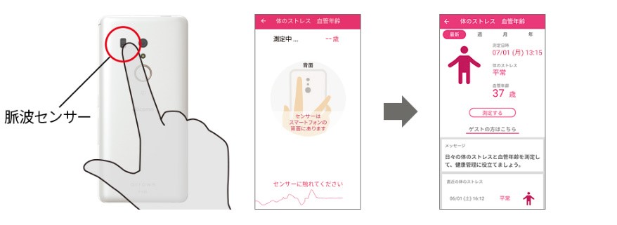 ▼なんとスマートウォッチにあるような脈拍センサーまで搭載しちゃってます。これにより血管年齢、体のストレス度合い、心拍数、睡眠の質まで測定、管理できるんです。↓