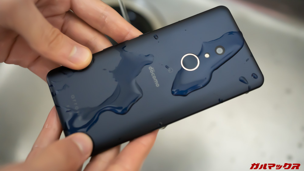 結構前から「スマホを洗剤で洗える」ってのはarrowsのウリでもあったんですが、2020年は例のウィルスが蔓延していて結構魅力的に見える部分になってきました。こんな感じで洗剤で丸洗いできるので除菌効果も高そう